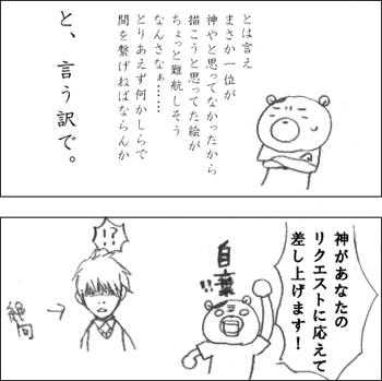 とりあえず、中原が感謝絵を描き終わるまでの間の場繋ぎとして一位の神が感謝の意を込めてある程度なんでもやってくれます(勿論限度はあります)
